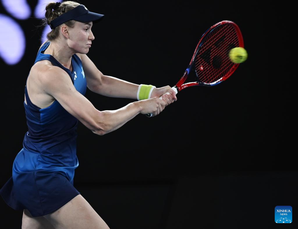 Elena Rybakina of Kazakhstan hits a return during the women's singles 2nd round match between Elena Rybakina of Kazakhstan and Varvara Gracheva of France at the Australian Open tennis tournament in Melbourne, Australia, Jan. 22, 2026. (Photo by Wang Shen/Xinhua)