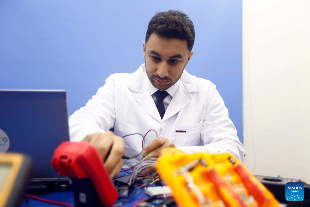 Mahmoud El-Koumy, a 32-year-old mechatronic engineer and robotics expert, works in his lab in Cairo, Egypt, on Jan. 17, 2026. From robots that can diagnose viruses to smartphone apps that translate ancient Egypt's hieroglyphs in real time, Egypt's young generation of tech entrepreneurs is turning artificial intelligence from a futuristic concept into practical tools for daily life.(Xinhua/Ahmed Gomaa)