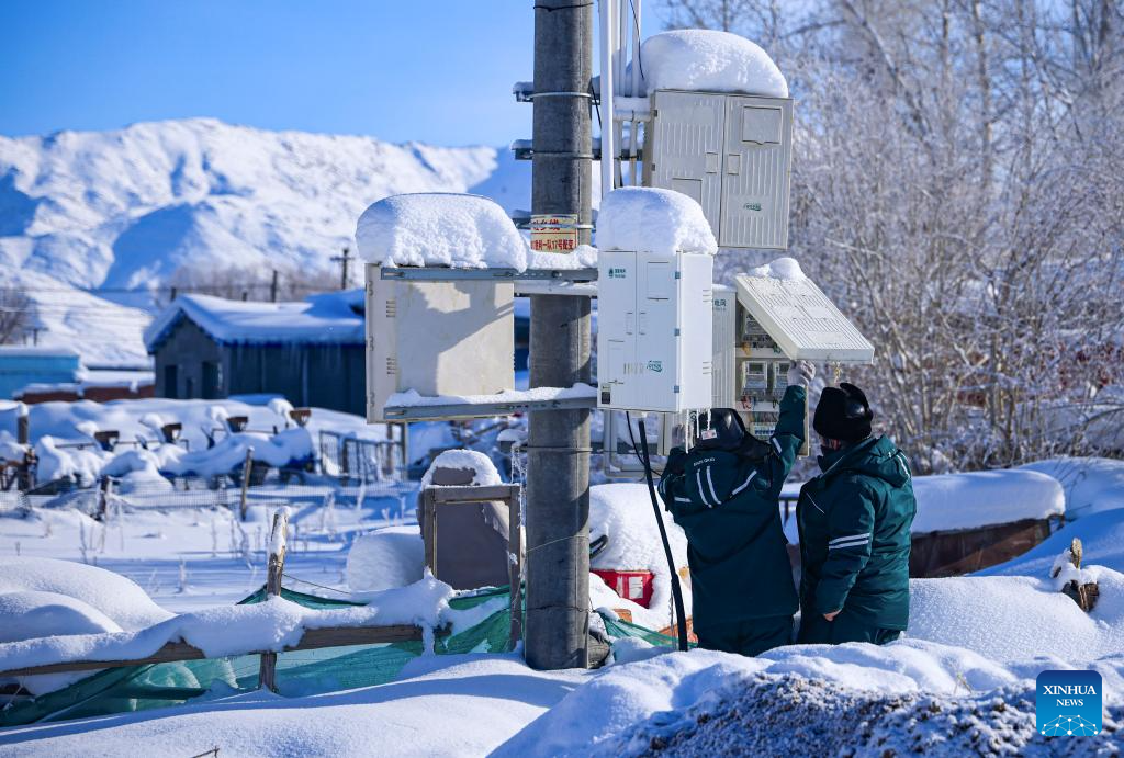 Power supply station employees check electricity meters in Turgun Town of Fuyun County in Altay Prefecture, northwest China's Xinjiang Uygur Autonomous Region, on Jan. 16, 2026. A cold wave has swept across the region in recent days, with temperatures in parts of Altay Prefecture dropping to minus 47 degrees Celsius. Amid strong winds and snow, local authorities in charge of transport and energy sectors have coordinated their efforts to ensure uninterrupted heating service and daily supplies for the residents. (Photo by Nurbek Nurman/Xinhua)