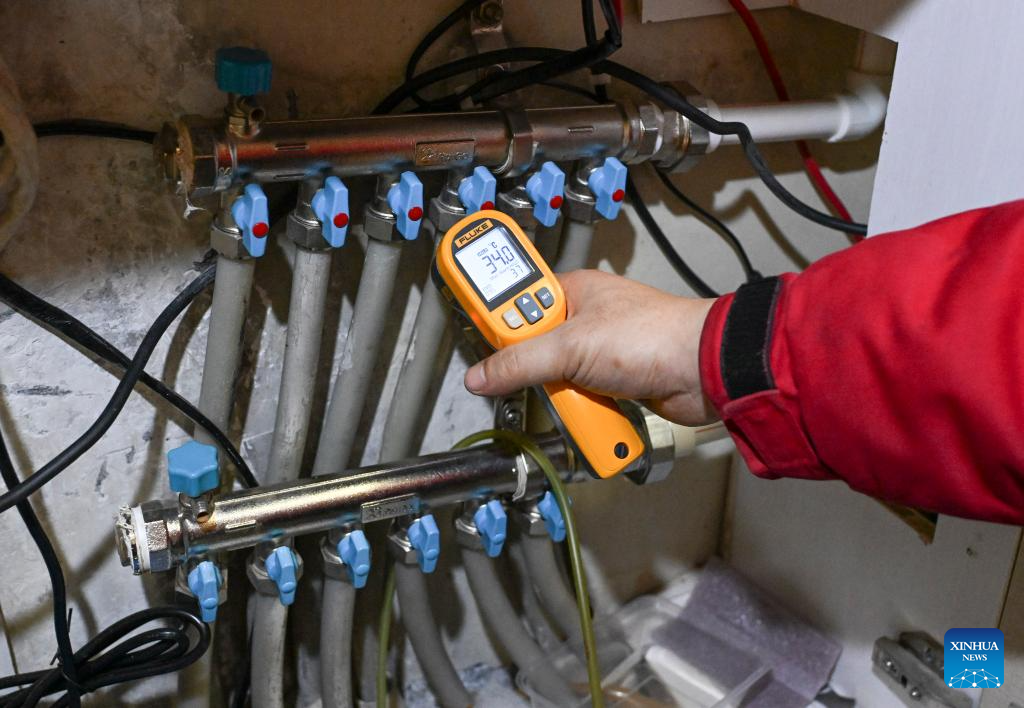 An employee checks the condition of the heating system at a residence in Urumqi, northwest China's Xinjiang Uygur Autonomous Region, on Jan. 18, 2026. A cold wave has swept across the region in recent days, with temperatures in parts of Altay Prefecture dropping to minus 47 degrees Celsius. Amid strong winds and snow, local authorities in charge of transport and energy sectors have coordinated their efforts to ensure uninterrupted heating service and daily supplies for the residents. (Xinhua/Wang Fei)