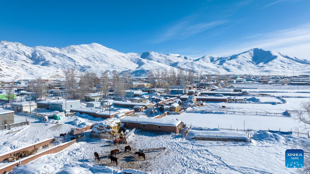 An aerial drone photo taken on Jan. 16, 2026 shows a village in Turgun Town of Fuyun County in Altay Prefecture, northwest China's Xinjiang Uygur Autonomous Region. A cold wave has swept across the region in recent days, with temperatures in parts of Altay Prefecture dropping to minus 47 degrees Celsius. Amid strong winds and snow, local authorities in charge of transport and energy sectors have coordinated their efforts to ensure uninterrupted heating service and daily supplies for the residents. (Photo by Nurbek Nurman/Xinhua)