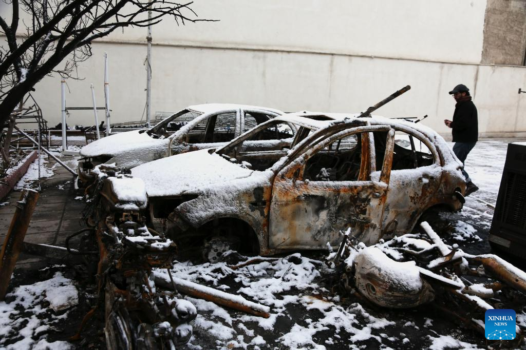 Vehicles damaged during the recent unrest are pictured in Tehran, Iran, Jan. 21, 2026. Iran's state television IRIB reported on Wednesday that 3,117 people were killed during recent unrest, citing the country's Forensic Medical Organization. (Xinhua/Shadati)