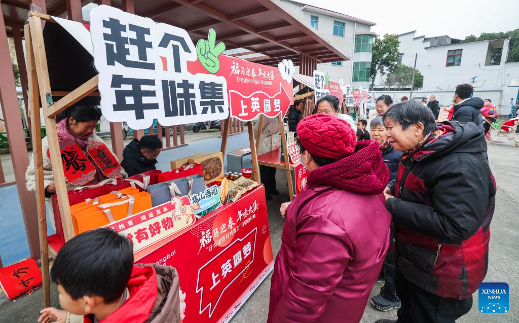 Villagers visit a farmers' fair held to welcome the Chinese Lunar New Year in Dongbaihu Town of Zhuji, east China's Zhejiang Province, Jan. 23, 2026. (Xinhua/Xu Yu)