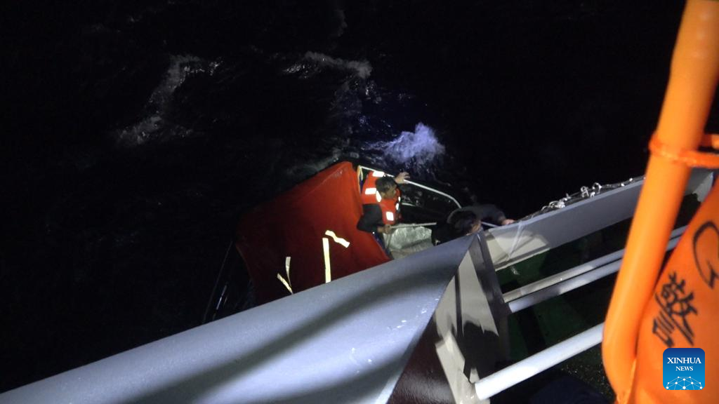 Members of the China Coast Guard carry out a rescue operation after a foreign cargo ship capsized in the territorial waters of south China's Huangyan Dao, Jan. 23, 2026. (China Coast Guard/Handout via Xinhua)