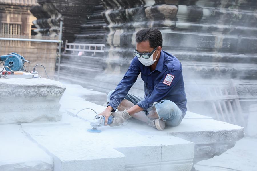 PHNOM PENH, Jan. 23 (Xinhua) -- Archaeologists are actively engaged in the restoration of the northern library at the iconic Angkor Wat in Cambodia's Angkor Archaeological Park, said a news release issued by the APSARA National Authority (ANA) on Thursday.
