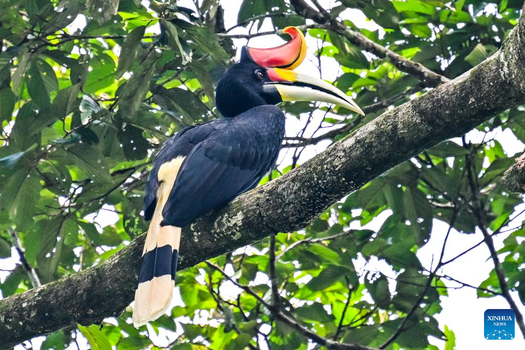 This photo taken on Jan. 19, 2026 shows a rhinoceros hornbill (Buceros rhinoceros) in Sandakan, Malaysia. (Xinhua/Cheng Yiheng)