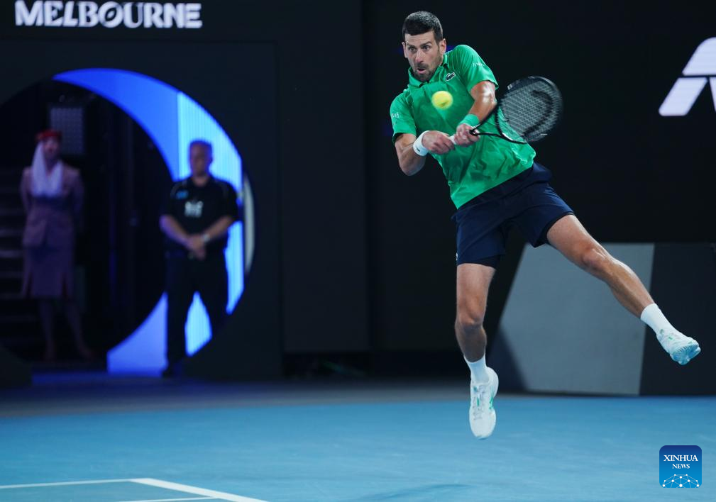 MELBOURNE, Jan. 24 (Xinhua) -- World number four Novak Djokovic showed no ill-effects on Saturday after tumbling to the court in a nasty fall as he clinched a record 400th grand slam win after downing Botic van de Zandschulp in the Australian Open third round.