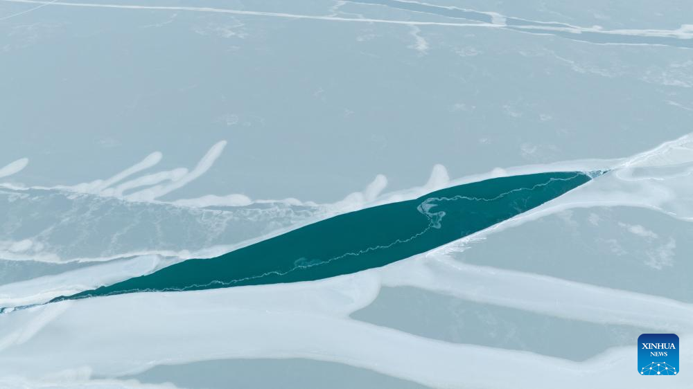 An aerial drone photo taken on Jan. 23, 2026 shows a view of Qinghai Lake in northwest China's Qinghai Province. (Xinhua/Zhang Long)