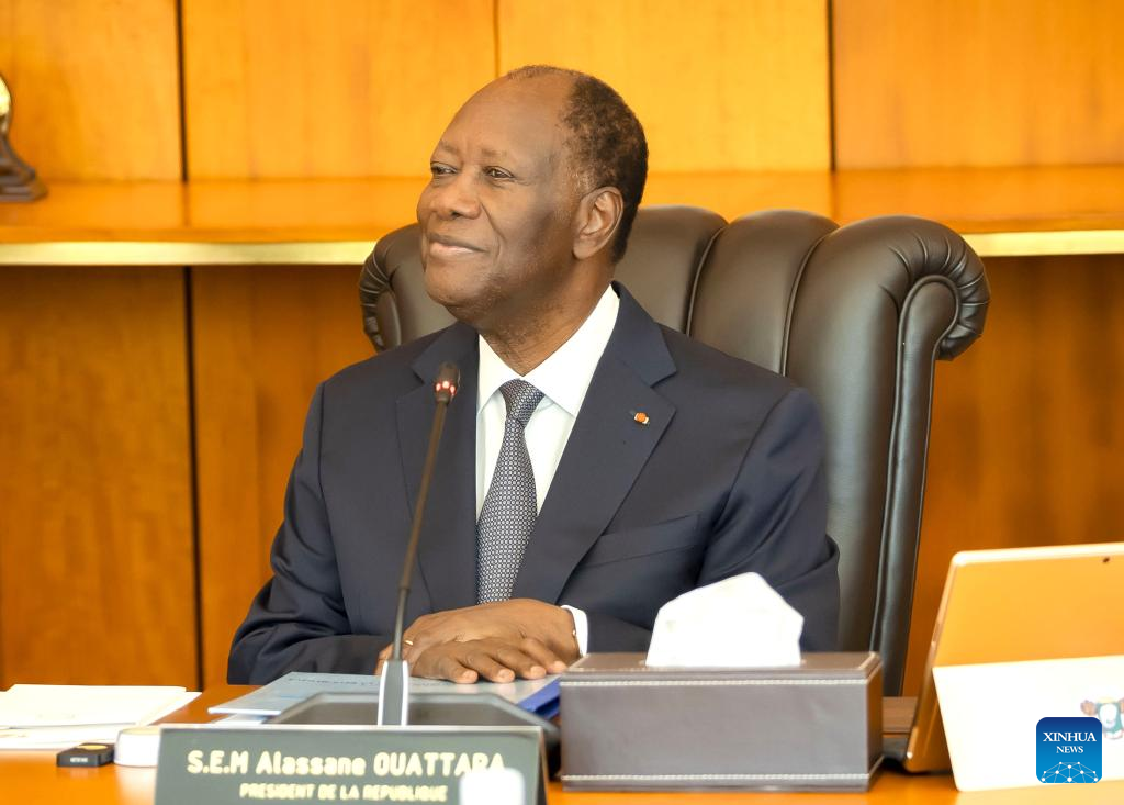 Ivorian President Alassane Ouattara attends the first cabinet meeting of the new government in Abidjan, Cote d'Ivoire, Jan. 24, 2026. (Photo by Yvan Sonh/Xinhua)
