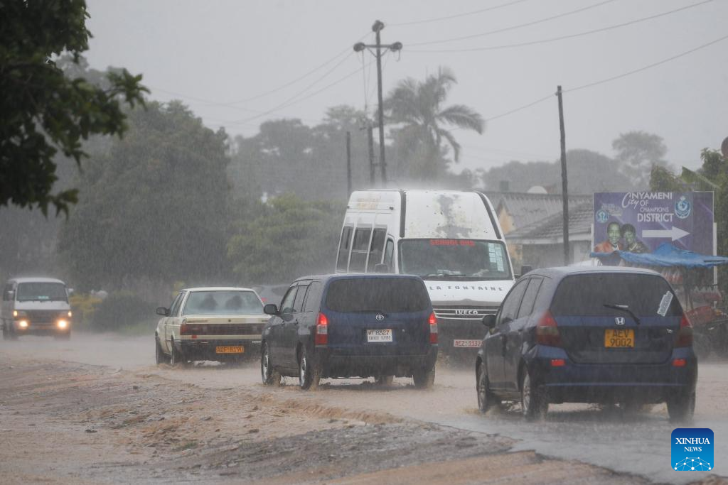 Cars drive in heavy rain in Harare, Zimbabwe, Jan. 24, 2026. Persistent rains have battered large parts of Zimbabwe in recent months, leaving more than 70 people dead and causing extensive damage to road infrastructure. (Str/Xinhua)