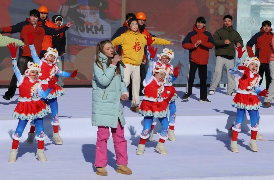 SHENYANG, Jan. 24 (Xinhua) -- A winter fishing event began on Saturday at Wolong Lake in Kangping County of Shenyang, northeast China's Liaoning Province, featuring performances, fish cuisine, and ice and snow recreational facilities.
