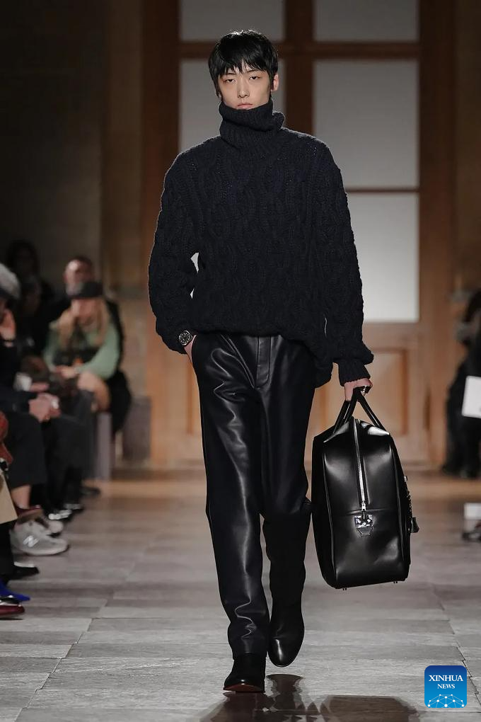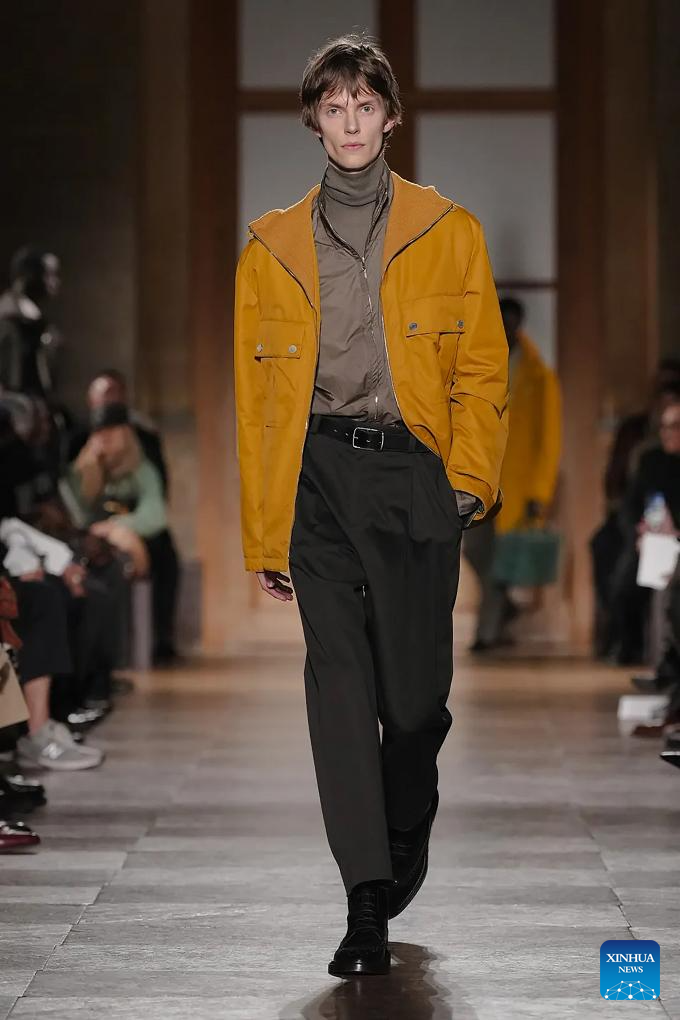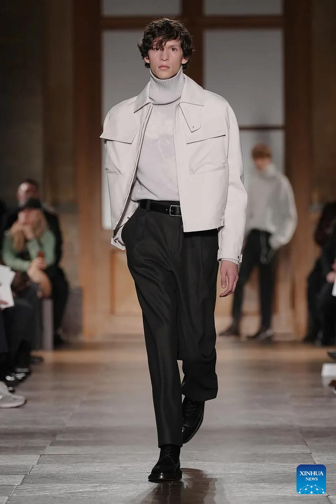 A model presents a creation from the menswear Fall/Winter 2026-2027 collections by Hermes during the Men Paris Fashion Week, in Paris, France, on Jan. 24, 2026. (MeetEurope/Handout via Xinhua)