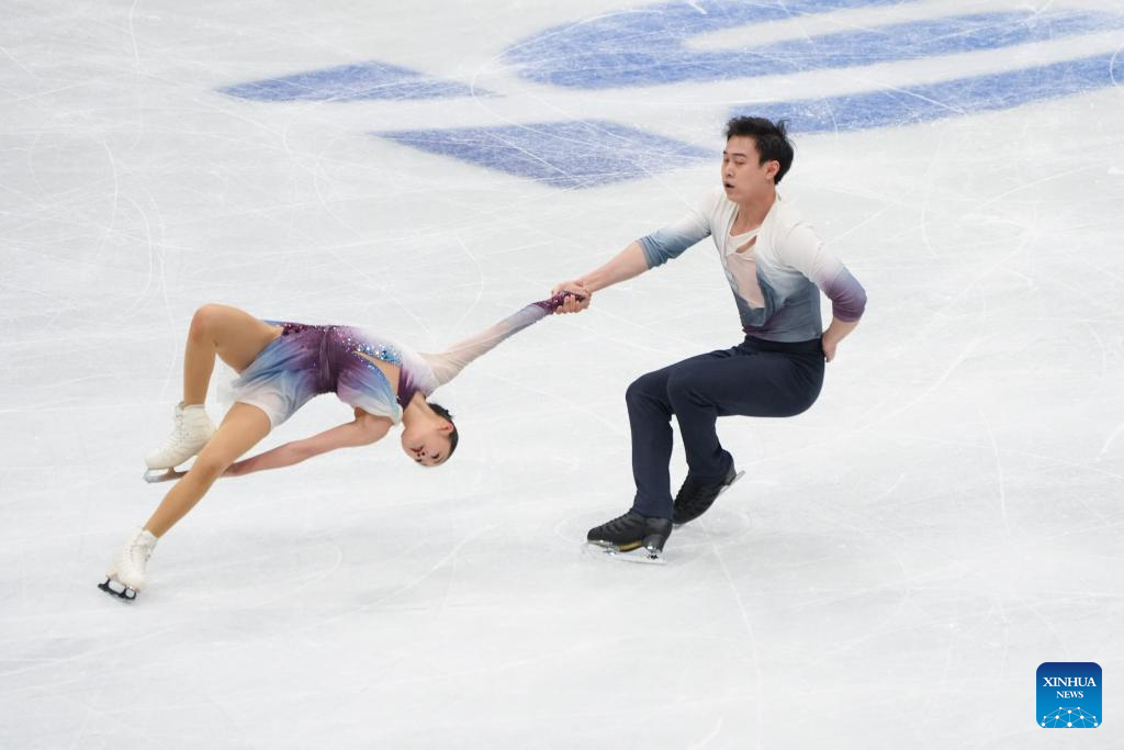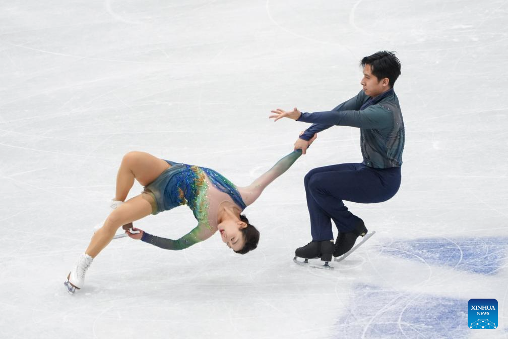 Alisa Efimova (top)/Misha Mitrofanov of the United States perform during the pairs free skating at the ISU Four Continents Figure Skating Championships in Beijing, China, Jan. 24, 2026. (Xinhua/Xie Han)
