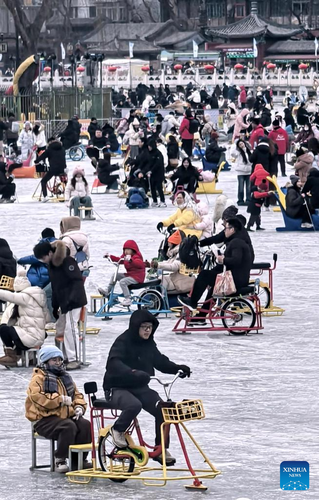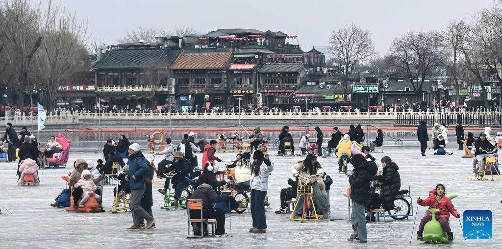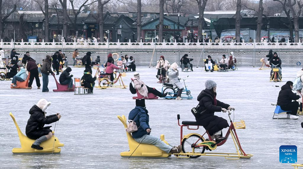 People play on the frozen Shichahai lake in Beijing, capital of China, Jan. 25, 2026. (Xinhua/Li Xin)