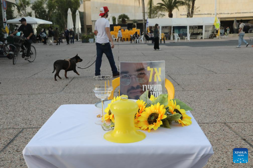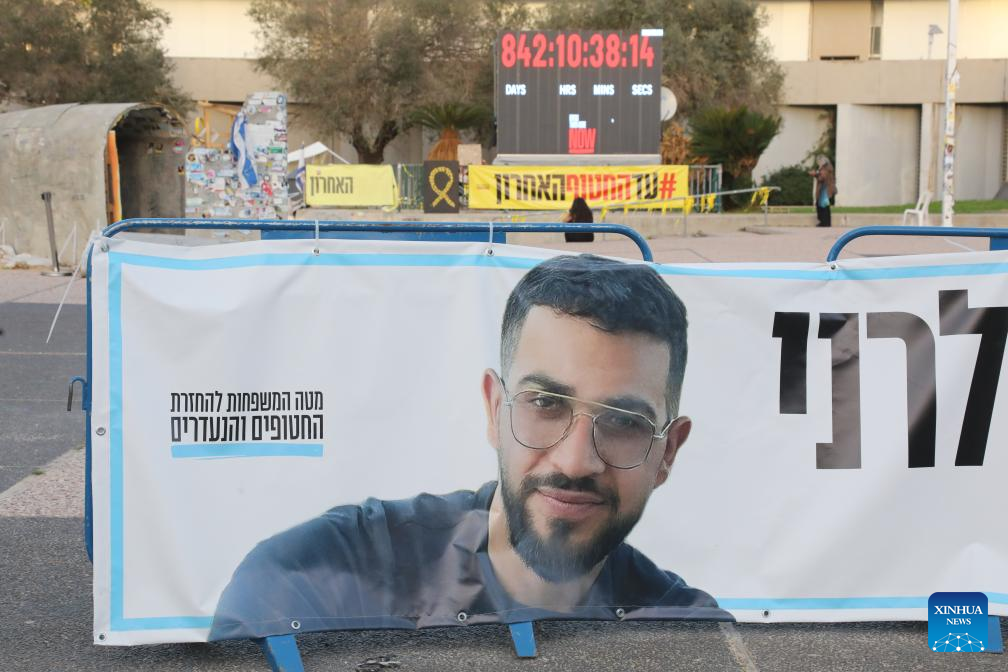 Photo taken on Jan. 26, 2026 shows a poster of Ran Gvili, the last Israeli hostage whose remains have been found in the Gaza Strip, at a square in Tel Aviv, Israel. (Gideon Markowicz/JINI via Xinhua)