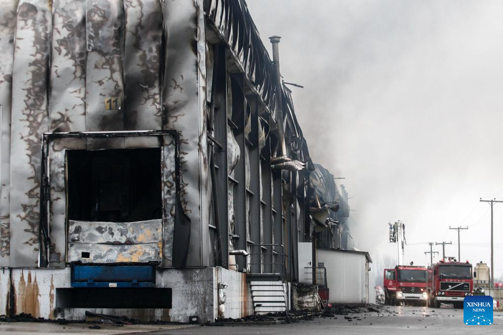 This photo taken on Jan. 26, 2026 shows the site of an explosion at a food factory in Trikala, Greece. Four bodies were found after an explosion at a food factory in the central Greek city of Trikala, one worker remains missing, and several others were hospitalized, Greek national broadcaster ERT reported on Monday. (Photo by Thanasis Kalliaras/Xinhua)