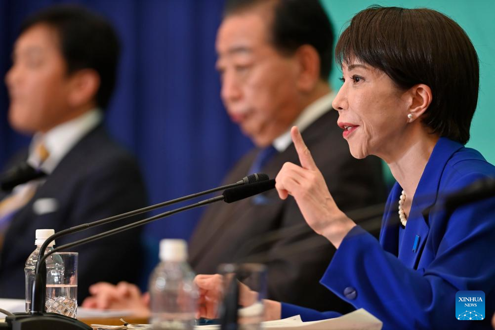 Takaichi, who also serves as president of the ruling Liberal Democratic Party, made the remarks during a party leaders' debate on Monday. (David Mareuil/Pool via Xinhua)