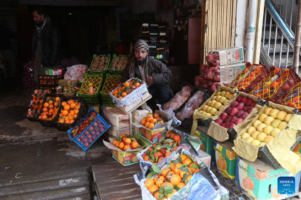 A vendor is seen at his fruit stall in a market in Kabul, Afghanistan, Jan. 27, 2026. Afghanistan's Ministry of Industry and Commerce said that the country exported 317,517 tonnes of fresh fruit over the past year, generating an estimated 142 million U.S. dollars, local media Tolo news reported on Monday. (Photo by Saifurahman Safi/Xinhua)