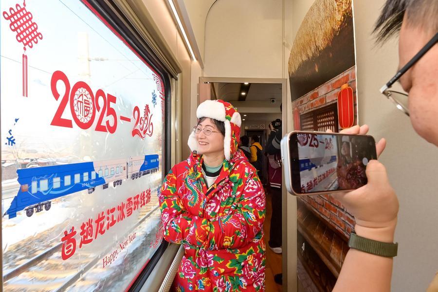 A drone photo taken on Jan. 25, 2026 shows a train running in Taizhou, east China's Jiangsu Province. A new train schedule will be put into effect in China from Jan. 26. 2026. (Photo by Tang Dehong/Xinhua)A passenger poses for photos on train No. Y783 in northeast China's Heilongjiang Province, Jan. 25, 2026. Train No. Y783, a themed tourism train bound for Yabuli featuring travel photography services, was inaugurated Sunday in Harbin. It marks the company's first offering of its kind this year. Operated by China Railway Harbin Group Co., Ltd., the train allows passengers to dress in diverse costumes and avail themselves of photography services. (Photo by Yuan Yong/Xinhua)Giant panda Lei Lei is seen at Ueno Zoo in Tokyo, Japan, Jan. 25, 2026. Giant pandas Xiao Xiao and Lei Lei, currently residing at a zoo in Tokyo, will depart for China on Jan. 27, marking the first time in about half a century that Japan will be without any pandas, local media reported. (Xinhua/Jia Haocheng)Train No. K303 prepares to depart from Guangzhou Railway Station in Guangzhou, south China's Guangdong Province, Jan. 25, 2026. Train No. K303, the last conventional train departed here on Sunday, concluding the terminal operation of this kind of trains at the century-old station. (Xinhua/Wu Lu)Workers head to their work sites in Amdo County, Nagqu, southwest China's Xizang Autonomous Region, Jan. 23, 2026. Perched at an altitude of 4,886 meters, the Za'gya Zangbo signal maintenance section in Amdo County is the world's highest railway signal maintenance section. Fierce winds and bitter cold prevail in the area, where temperatures often drop below minus 30 degrees Celsius. Since its establishment in 2018, the section has been responsible for maintaining and repairing signal equipment at three high-altitude stations -- Tanggula South, Za'gya Zangbo and Xuechama. Ten young workers from various ethnic groups, including the Han, Tibetan and Mongolian, are currently on duty here. With an average age of under 32, they brave extreme conditions to keep the railway operating safely, ensuring the smooth flow of trains during the upcoming Spring Festival travel rush and the long term. (Xinhua/Tenzing Nima Qadhup)An aerial drone photo taken on Jan. 25, 2026 shows the rime scenery of the Qixingshan forest park in Shuangyashan, northeast China's Heilongjiang Province. (Photo by Han Yang/Xinhua)Team China take photos with supporters after the 2026 AFC U23 Asian Cup final match between China and Japan in Jeddah, Saudi Arabia, Jan. 24, 2026. (Xinhua/Wang Haizhou)Children wave flags in Raqqa, northern Syria, Jan. 21, 2026. (Str/Xinhua)An artist performs during a show named "flaming ice" at an ice rink in a park in Moscow, Russia, Jan. 24, 2026. (Xinhua/Hao Jianwei)A resident cleans up snow in Paghman district, Kabul, Afghanistan, Jan. 25, 2026. At least 61 people were killed and 110 others injured due to heavy snowfall and rains across Afghanistan on Wednesday and Thursday, the National Disaster Management Authority (NDMA) said in a statement on Saturday. In addition to the human losses, the storms have completely or partially destroyed 458 homes, the NDMA added. (Photo by Saifurahman Safi/Xinhua)This photo taken with a mobile phone shows people attending a protest in Minneapolis, Minnesota, the United States, on Jan. 24, 2026. A man was shot and killed by federal agents in Minneapolis, the largest city in the U.S. state of Minnesota, on Saturday morning, authorities said. This incident marks the third shooting involving federal law enforcement officers in the city this month. (Xinhua)An aerial photo taken on Jan. 15, 2026 shows a flooded area in Kruger National Park, South Africa. The recent floods in South Africa have caused extensive damage to the country's largest and world-renowned game reserve, Kruger National Park, with losses estimated at nearly half a billion rand (about 30 million U.S. dollars). (South African National Parks/Handout via Xinhua)■