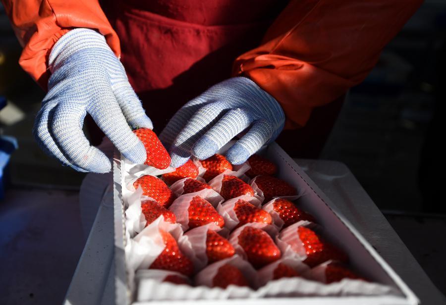 A worker packs freshly-picked strawberries at a strawberry processing center in Donggang City, Dandong, northeast China's Liaoning Province, Jan. 24, 2017. (Xinhua/Li Gang)A staff member works at a strawberry processing center in Donggang City, Dandong, northeast China's Liaoning Province, Jan. 11, 2026. (Xinhua/Li Gang)