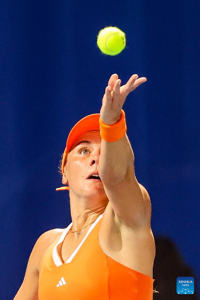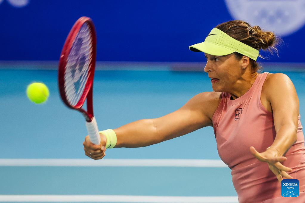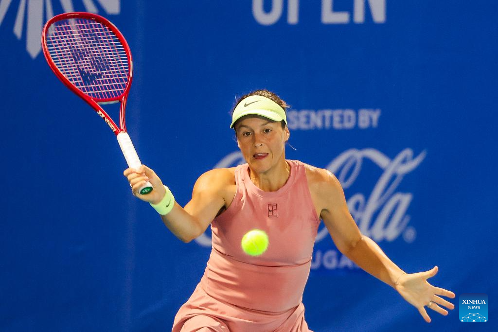 Tatjana Maria hits a return during the women's singles round of 32 match between Tatjana Maria of Germany and Leolia Jeanjean of France at the WTA Philippine Women's Open in Manila, the Philippines, Jan. 27, 2026. (Xinhua/Rouelle Umali)