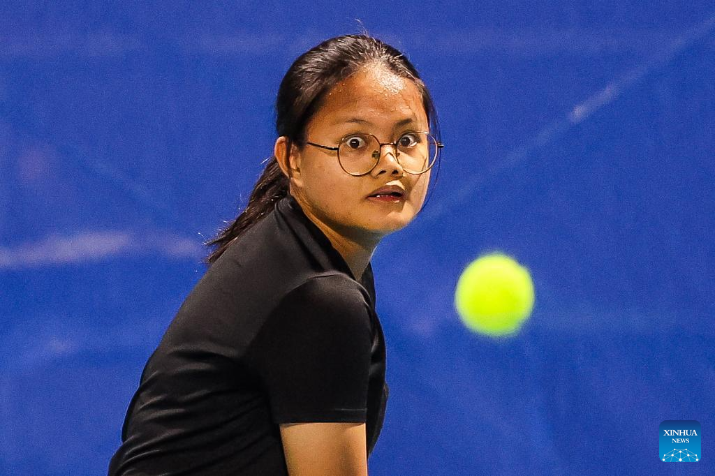 Kaye Ann Emana competes during the women's singles round of 32 match between Tatiana Prozorova of Russia and Kaye Ann Emana of the Philippines at the WTA Philippine Women's Open in Manila, the Philippines, Jan. 27, 2026. (Xinhua/Rouelle Umali)