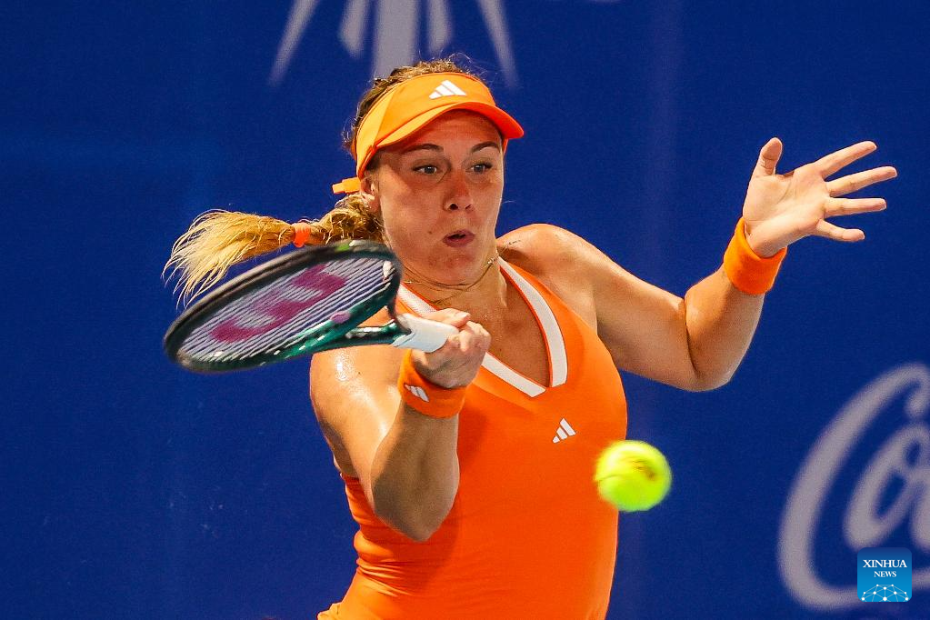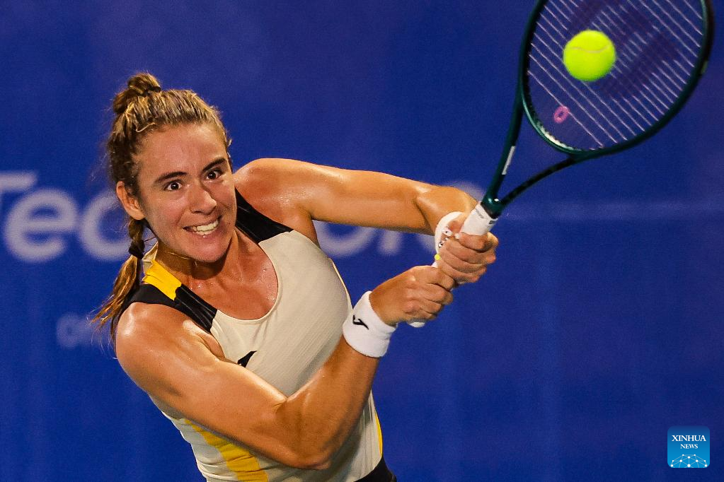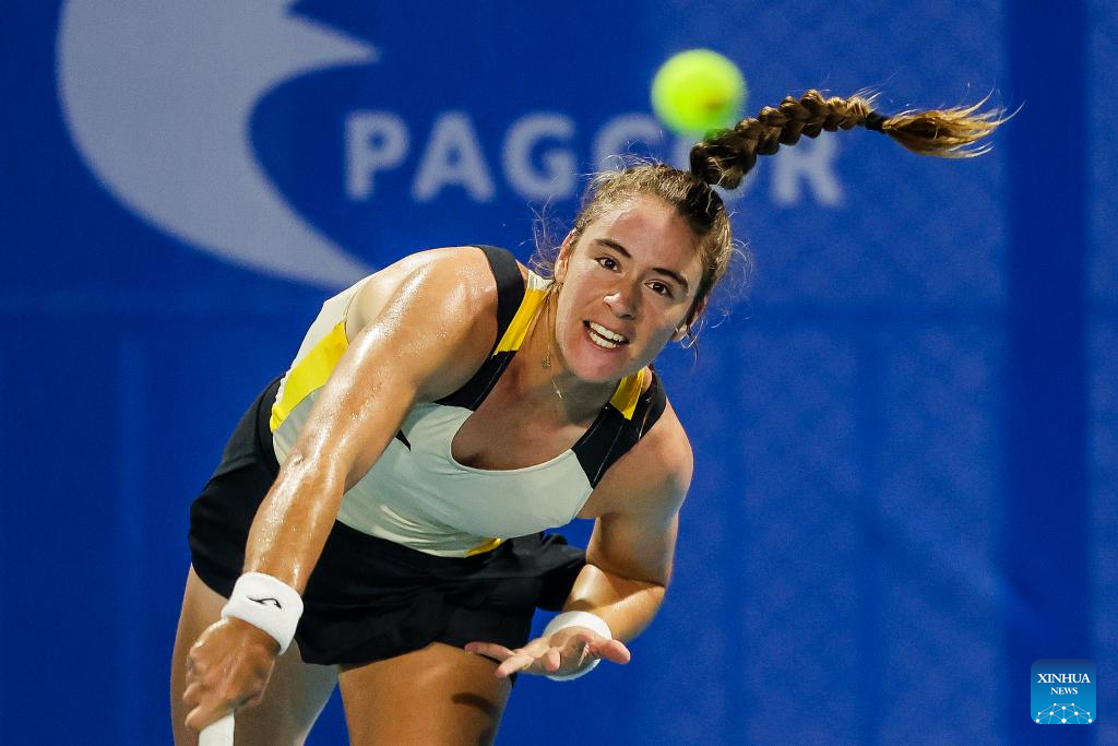 Leolia Jeanjean hits a return during the women's singles round of 32 match between Tatjana Maria of Germany and Leolia Jeanjean of France at the WTA Philippine Women's Open in Manila, the Philippines, Jan. 27, 2026. (Xinhua/Rouelle Umali)