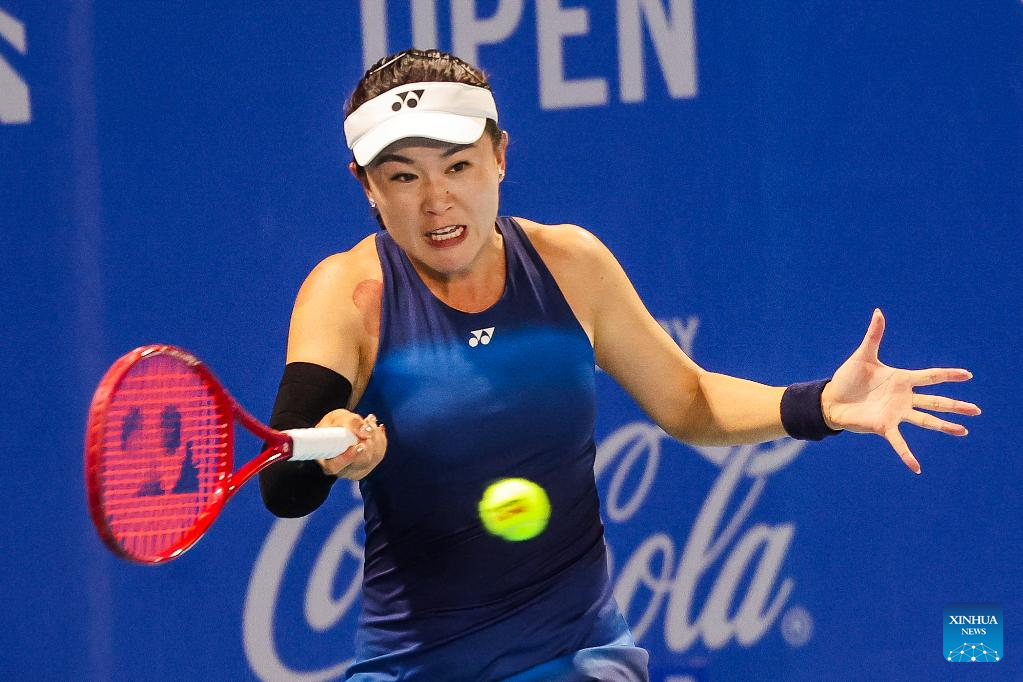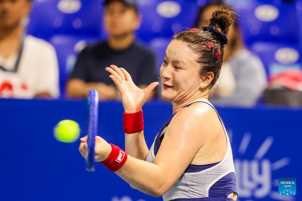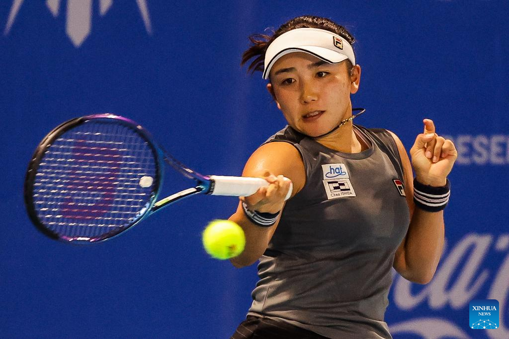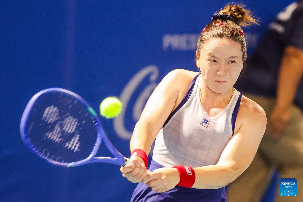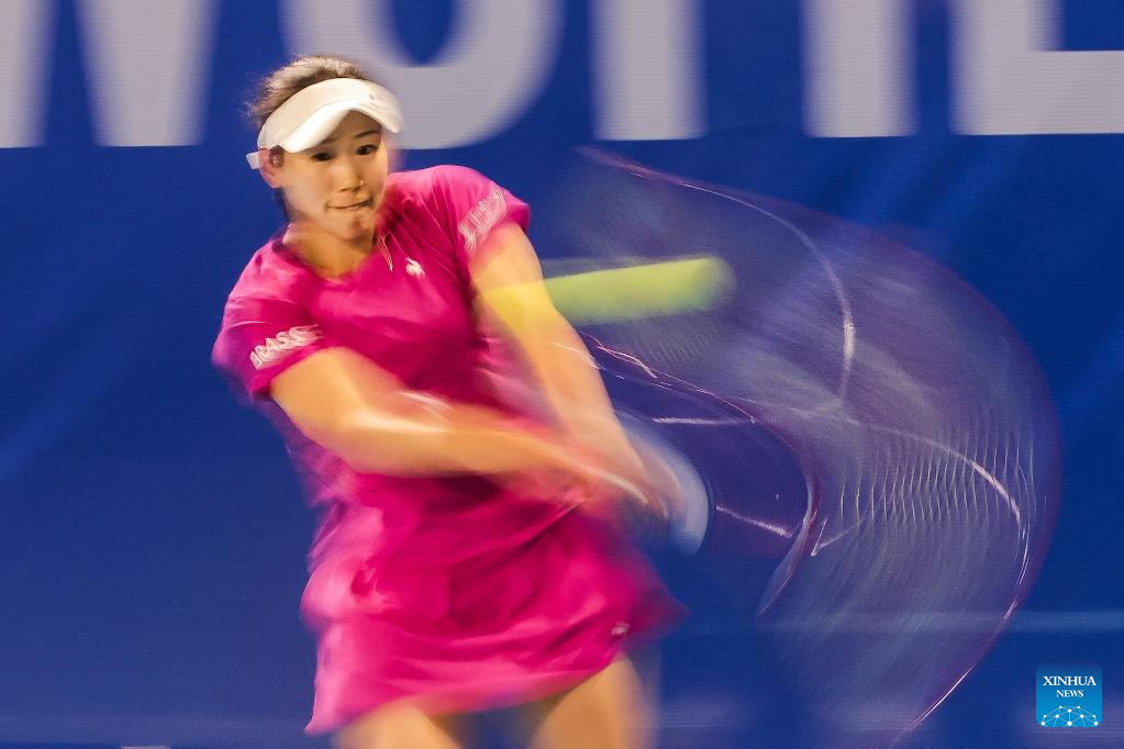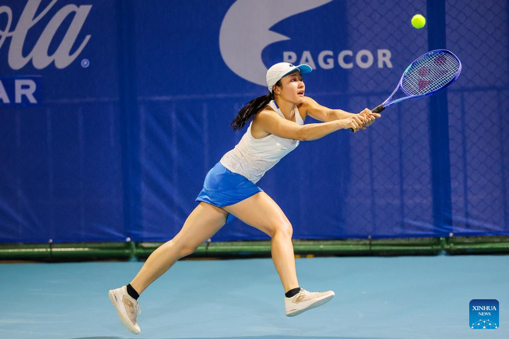 Zhu Lin of China competes during the women's singles round of 32 match between Zhu Lin of China and Sun Lulu of New Zealand at the WTA Philippine Women's Open in Manila, the Philippines, Jan. 27, 2026. (Xinhua/Rouelle Umali)