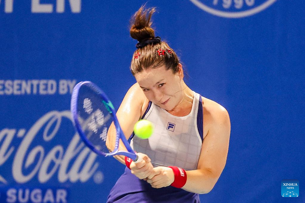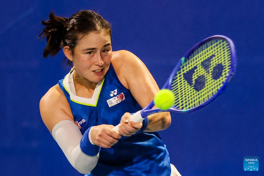 Mariia Tkacheva of Russia competes during the women's singles round of 32 match between Mariia Tkacheva of Russia and Saito Sara of Japan at the WTA Philippine Women's Open in Manila, the Philippines, Jan. 27, 2026. (Xinhua/Rouelle Umali)