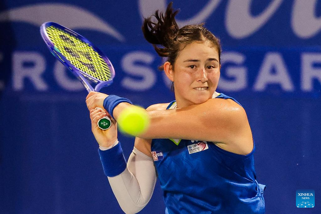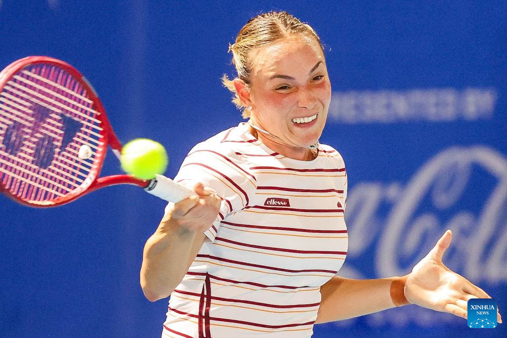 Solana Sierra of Argentina competes during the women's singles round of 32 match between Solana Sierra of Argentina and Joanna Garland of Chinese Taipei at the WTA Philippine Women's Open in Manila, the Philippines, Jan. 27, 2026. (Xinhua/Rouelle Umali)