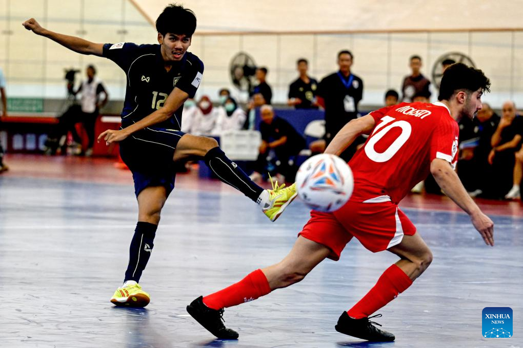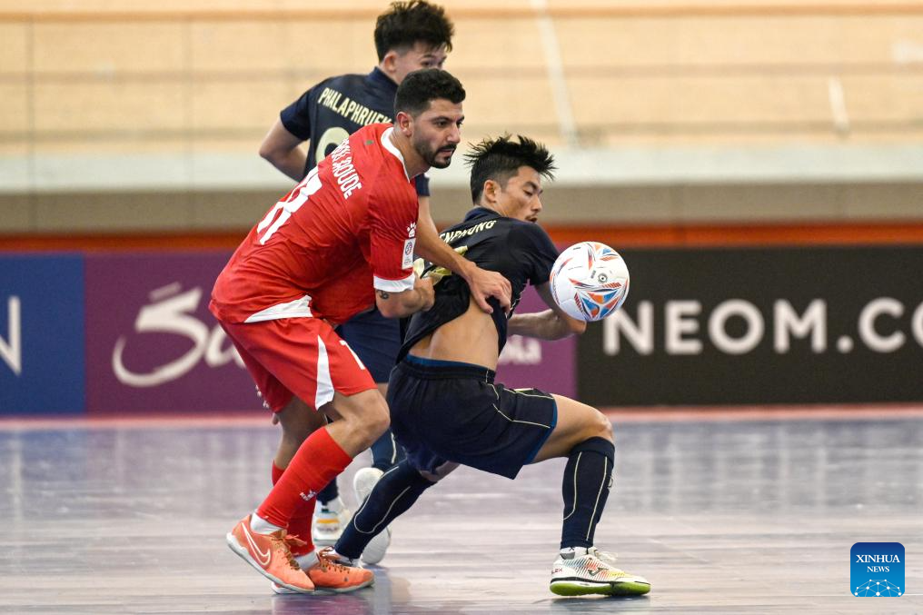 Muhammad Osamanmusa (L) of Thailand shoots during the Group B match between Thailand and Lebanon at the AFC Futsal Asian Cup 2026 in Jakarta International Velodrome, Jakarta, Indonesia, Jan. 27, 2026. (Photo by Agung Kuncahya B./Xinhua)