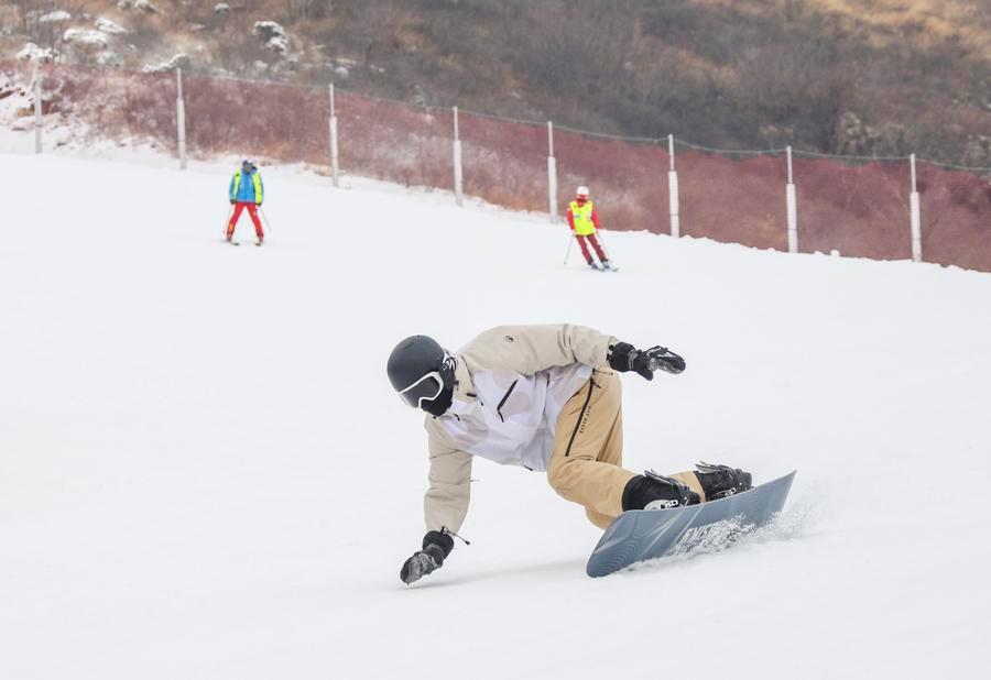 SHIJIAZHUANG, Jan. 27 (Xinhua) -- Among a sea of bundled-up skiers on the gleaming snow, Qu Xiaotong, 32, stands out thanks to his signature move, which consists of gliding backward down the slope with a heavy camera firmly secured in his grasp.