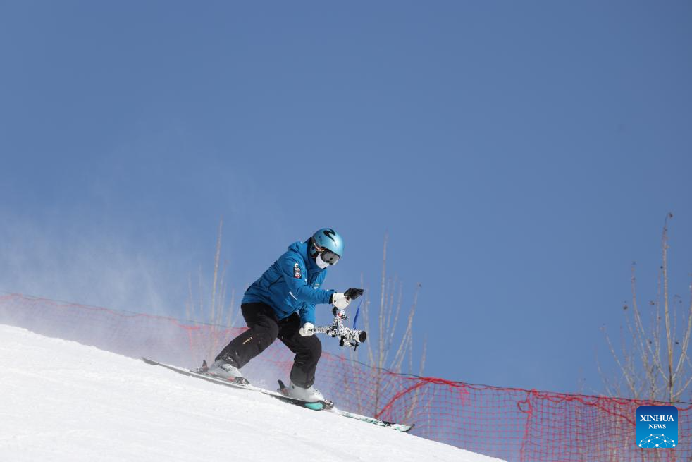 SHIJIAZHUANG, Jan. 27 (Xinhua) -- Among a sea of bundled-up skiers on the gleaming snow, Qu Xiaotong, 32, stands out thanks to his signature move, which consists of gliding backward down the slope with a heavy camera firmly secured in his grasp.