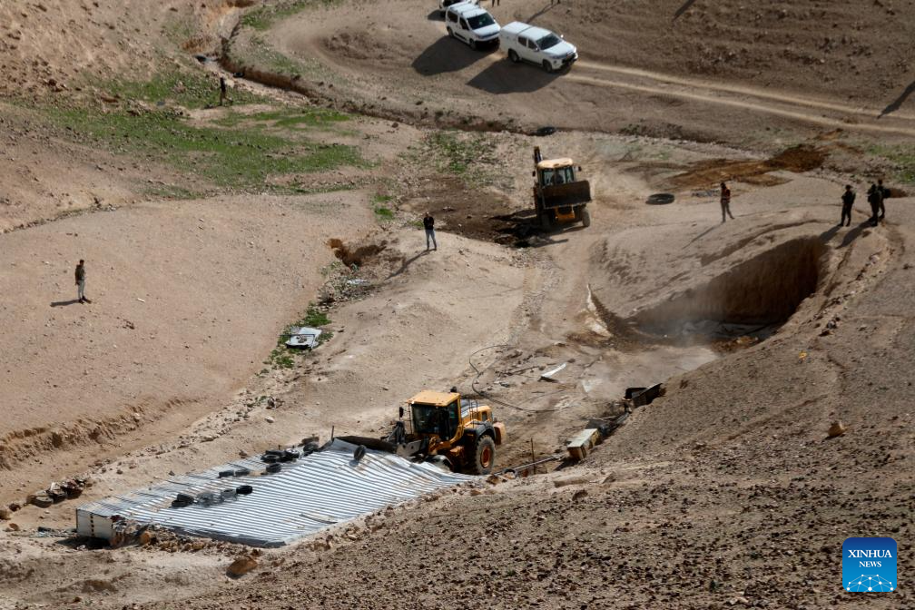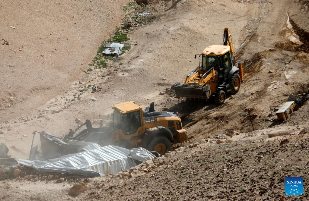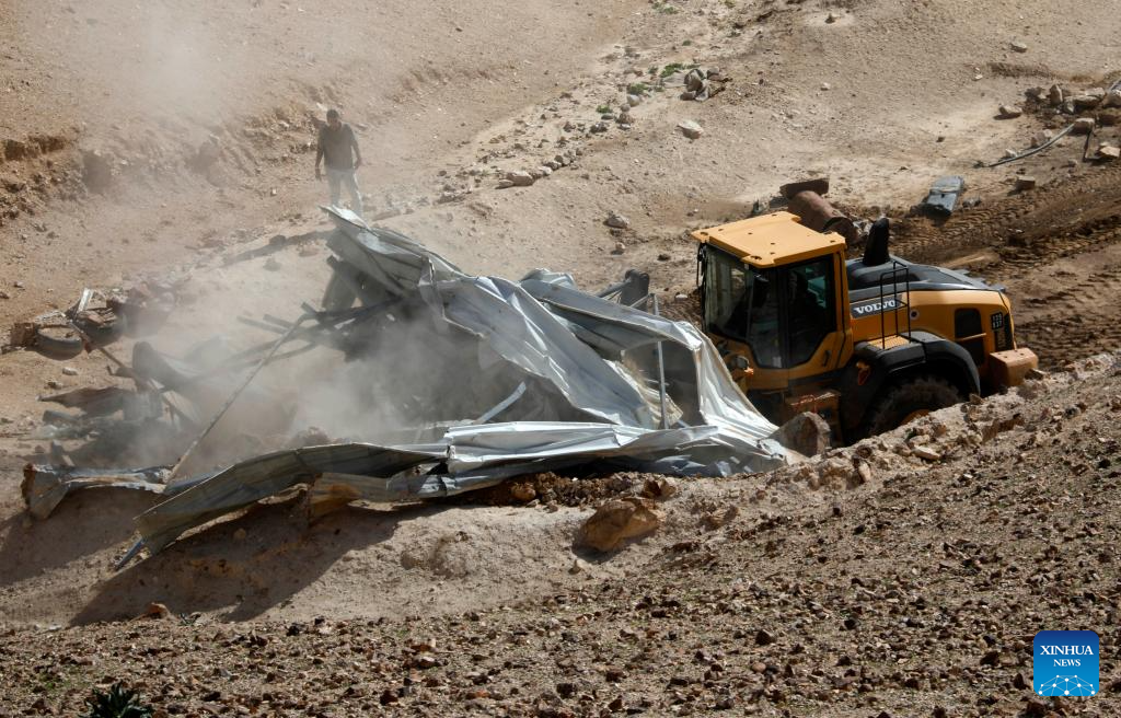 An Israeli military bulldozer demolishes a home in the Bedouin areas south of the West Bank city of Hebron, on Jan. 26, 2026. (Photo by Mamoun Wazwaz/Xinhua)