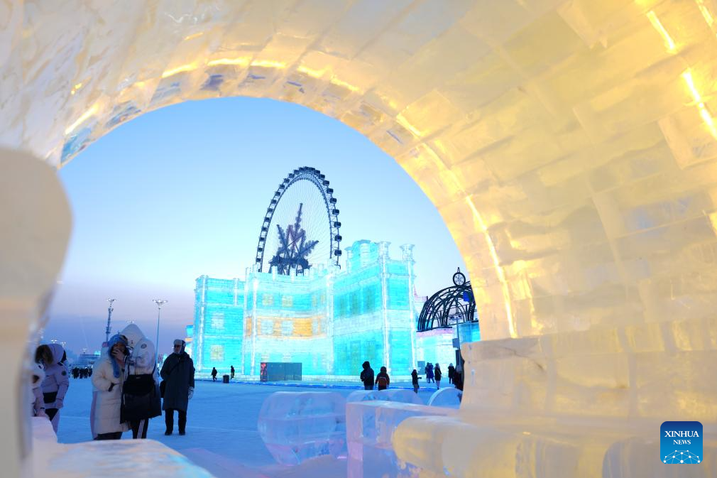 People visit the Harbin Ice-Snow World, the world's largest ice-and-snow theme park, in Harbin, northeast China's Heilongjiang Province, Jan. 27, 2026. (Xinhua/Wang Song)