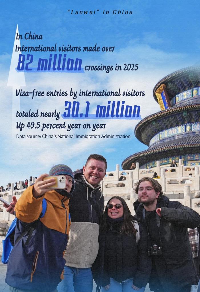Fueled by China's expanding visa-free policies, inbound travel surged in 2025, with visa-free entries jumping 49.5 percent year-on-year to nearly 30.1 million, official data showed.