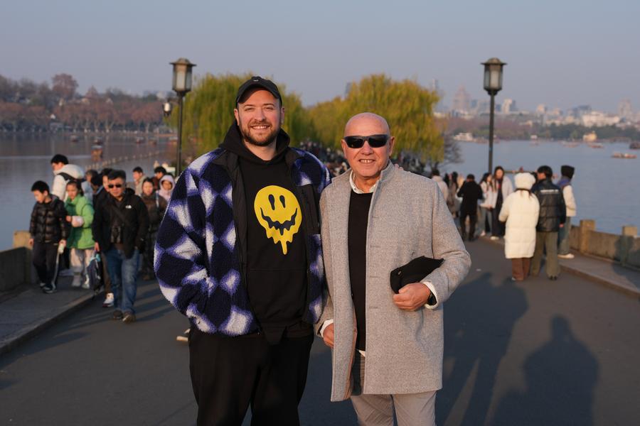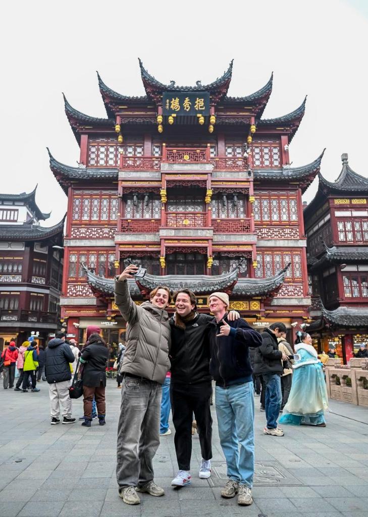 Austrian tourist Christian Edlinger (L) and his wife Heidi Reiss-Edlinger pose for a photo at the Bund in Shanghai, east China, Jan. 6, 2026. It was their fourth visit to China. (Xinhua/Chen Haoming)Dutch tourists Bastian Brinksma (L), Tim Tonkes (C) and Odin Schrama pose for photos in Yuyuan Garden in Shanghai, east China, Jan. 6, 2026. (Xinhua/Chen Haoming)Spanish tourist Jose Vicente Guerrero (R, front) and his son Ander Guerrero pose for a photo at West Lake scenic area in Hangzhou, east China's Zhejiang Province, Jan. 3, 2026. (Xinhua/Huang Zongzhi)Foreign tourists walk out of Suifenhe Railway Station in Suifenhe, northeast China's Heilongjiang Province, on Jan. 8, 2026. (Xinhua/Zhang Tao)