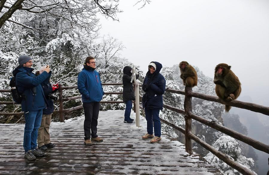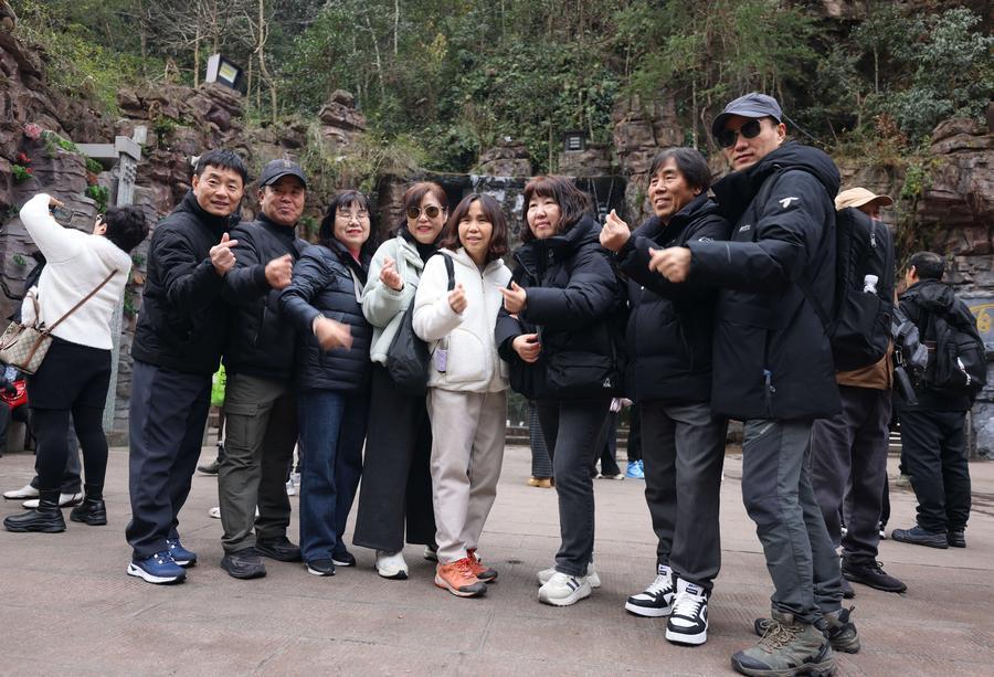 Dutch tourists David (L, front) and Pim (R, front) pose for photos with Chinese tourists at the Tiantan (Temple of Heaven) Park in Beijing, capital of China, Jan. 7, 2026. (Xinhua/Ju Huanzong)German tourists Martha (R) and Sofie taste Tanghulu, a popular Chinese winter snack of crispy sugar-coated hawthorns, at Qianmen Street in Beijing, capital of China, Jan. 7, 2026. (Xinhua/Ju Huanzong)South Korean tourists dressed in Hanfu, a traditional Chinese attire, pose for photos in Yuyuan Garden in Shanghai, east China, Jan. 6, 2026. (Xinhua/Chen Haoming)Italian tourists visit the Zhangjiajie National Forest Park in central China's Hunan Province, Jan. 2, 2026. (Photo by Wu Yongbing/Xinhua)A foreign tourist poses for photos at a sightseeing platform near the Liziba Station of Chongqing Rail Transit in Yuzhong District of southwest China's Chongqing, Jan. 7, 2026. (Xinhua/Huang Wei)Foreign tourists take photos at a sightseeing platform of Liziba in Yuzhong District of southwest China's Chongqing, Jan. 7, 2026. (Xinhua/Huang Wei)South Korean tourists pose for group photos at Zhangjiajie National Forest Park in central China's Hunan Province, Jan. 1, 2026. (Photo by Wu Yongbing/Xinhua)