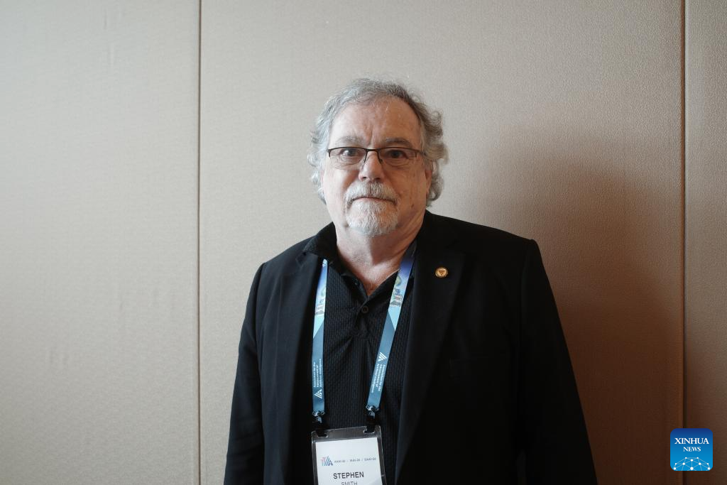 Stephen Smith, president of the Association for the Advancement of Artificial Intelligence (AAAI) and a research professor at Carnegie Mellon University, is pictured during an interview with Xinhua in Singapore, on Jan. 25, 2026. (Xinhua/Shu Chang)