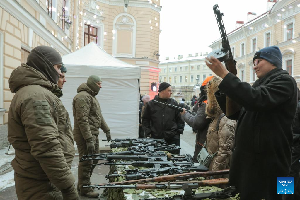 Weapons used during the Great Patriotic War of the Soviet Union are on display on the streets of St. Petersburg, Russia, Jan. 27, 2026. A series of events are held in St. Petersburg on Jan. 27 to mark the 82nd anniversary of the victory in the Siege of Leningrad during the Great Patriotic War of the Soviet Union. (Photo by Irina Motina/Xinhua)