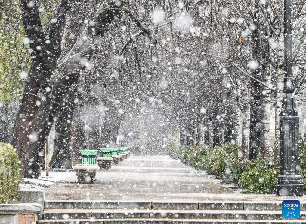 Snow falls in Madrid, Spain, Jan. 28, 2026. (Xinhua/Cheng Min)