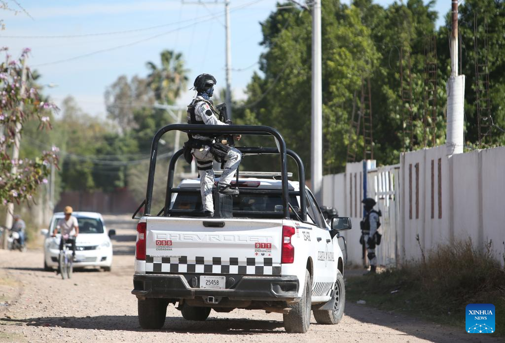 Security personnel patrol near the soccer field where a shooting occurred on Sunday, in Salamanca, Mexico's central state of Guanajuato, Jan. 26, 2026. Gunmen opened fire during an amateur soccer match in central Mexico on Sunday, killing at least 11 people and wounding 12 others, local authorities said. (Photo by Mario Armas/Xinhua)