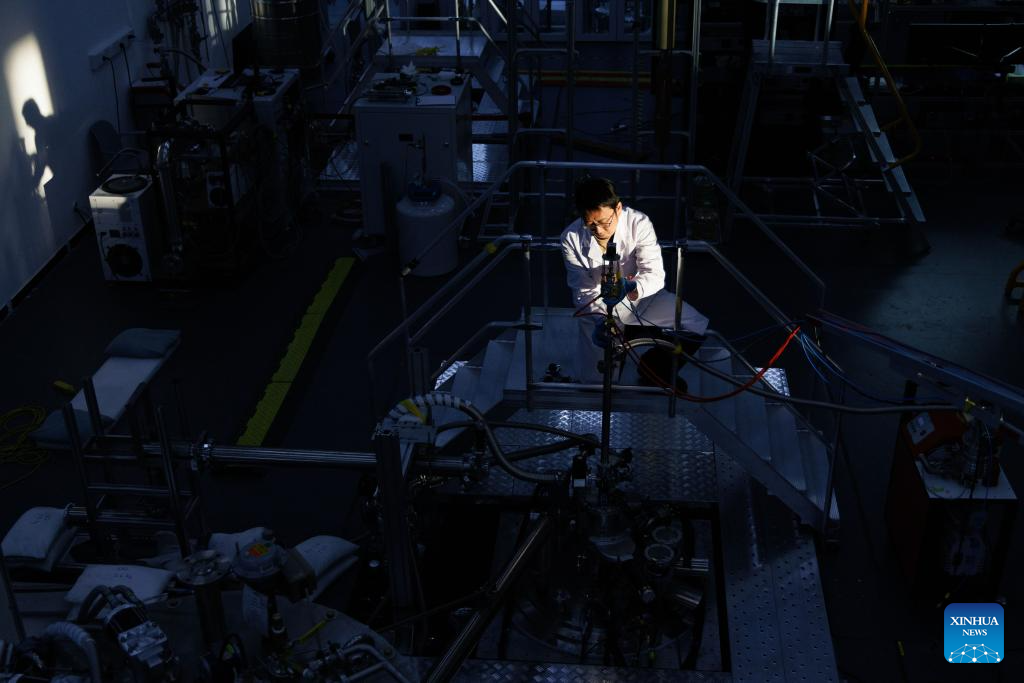 Researcher Li Gang works at the ultra-low temperature high magnetic field quantum oscillation experimental station of the Institute of Physics of the Chinese Academy of Sciences in Beijing, capital of China, on Jan. 26, 2026. China has achieved a 35.6 tesla all-superconducting magnet in an experiment facility, setting a new record, the Chinese Academy of Sciences (CAS) said on Tuesday.
