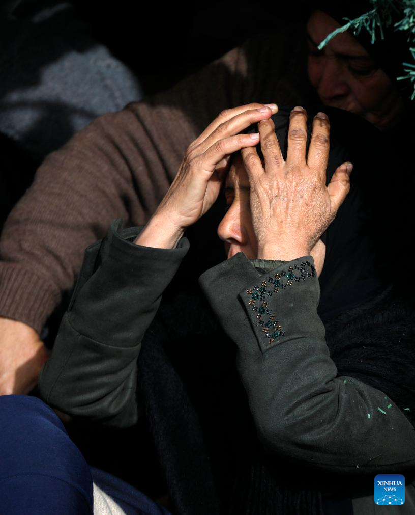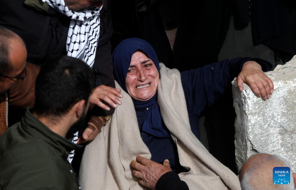 Relatives mourn during the funeral of Palestinian young man Mohammad Rajeh Nasrallah who was killed by the Israeli forces, in the West Bank city of Hebron, on Jan. 28, 2026. Mohammad Rajeh Nasrallah, 20 years old, died Tuesday evening from critical wounds sustained after being shot by Israeli forces during a military raid in the town of Ad-Dhahiriya, south of Hebron. (Photo by Mamoun Wazwaz/Xinhua)