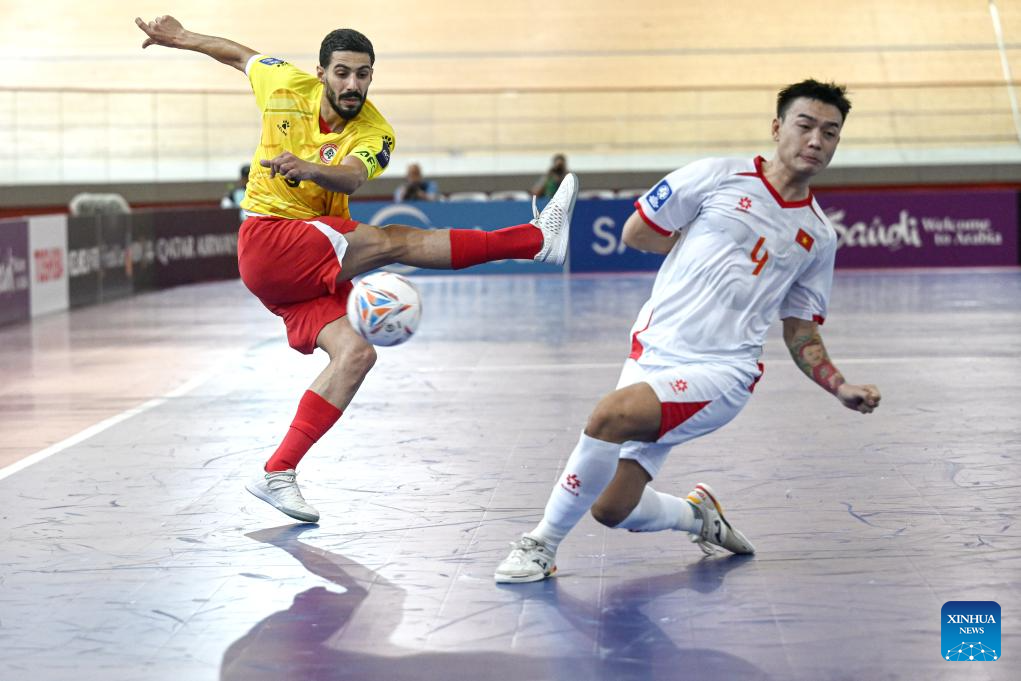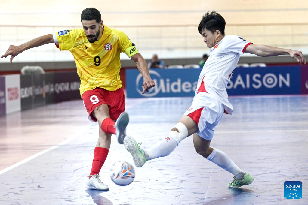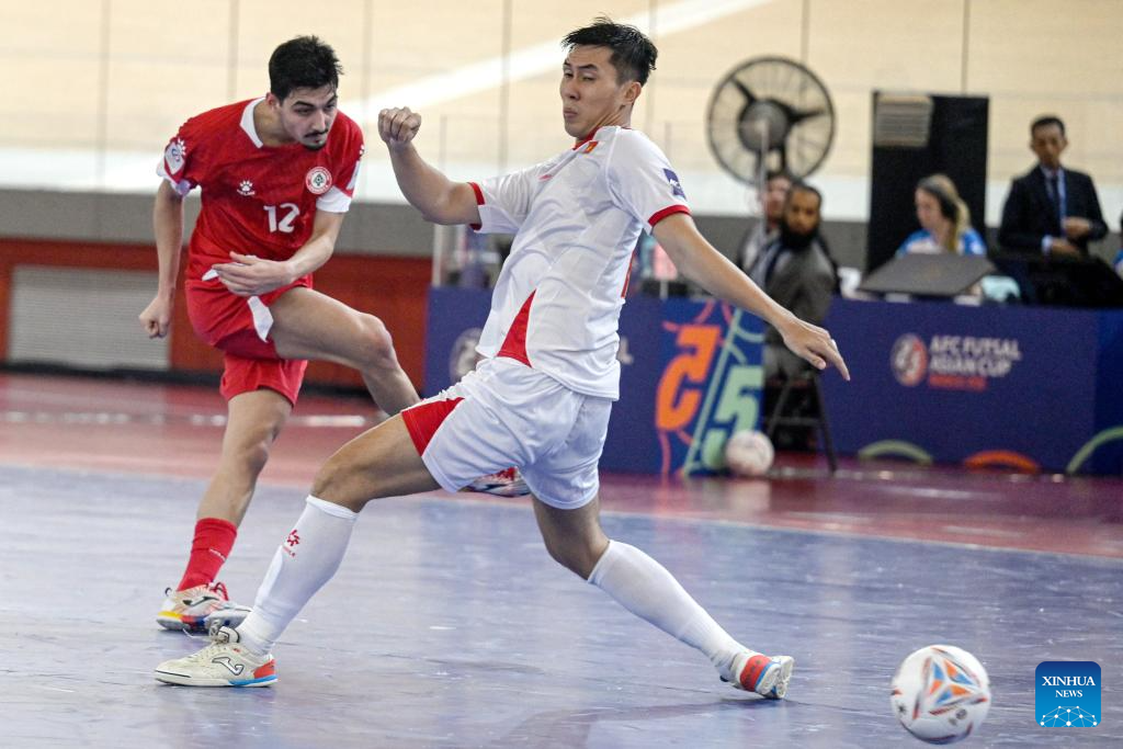 Mustafa Rhyem (L) of Lebanon shoots the ball during the Group B match between Lebanon and Vietnam at the AFC Futsal Asian Cup 2026 in Jakarta, Indonesia on Jan. 29, 2026. (Xinhua/Agung Kuncahya B.)