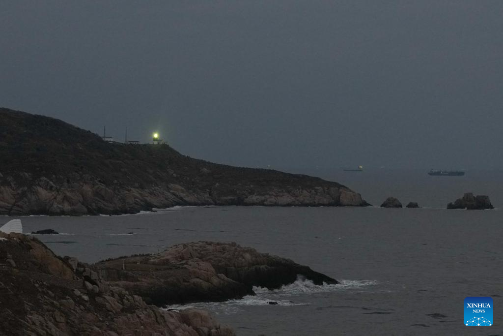 This photo taken on Jan. 29, 2026 shows the Huaniao lighthouse in Huaniao Town of Shengsi County in Zhoushan City, east China's Zhejiang Province. The Huaniao lighthouse, built in 1870, is located at the northernmost point of the Zhoushan archipelago on the shipping route from the Yangtze River estuary to the Pacific Ocean. (Xinhua/Huang Zongzhi)