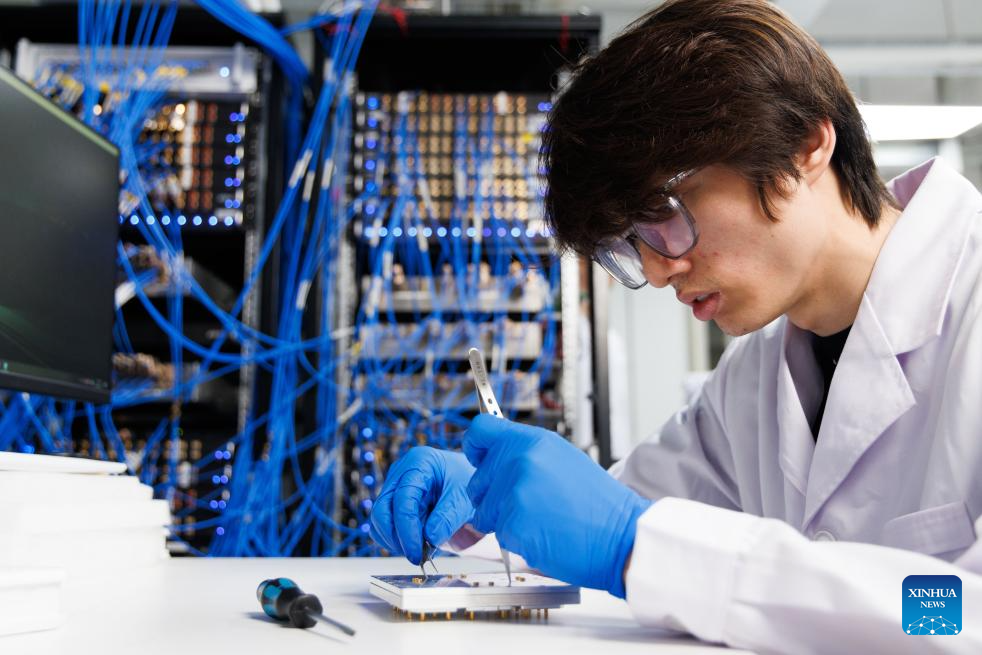 Researcher Liu Zhenghe checks wires at a lab of the Institute of Physics under the Chinese Academy of Sciences (CAS) in Beijing, capital of China, Jan. 21, 2026.