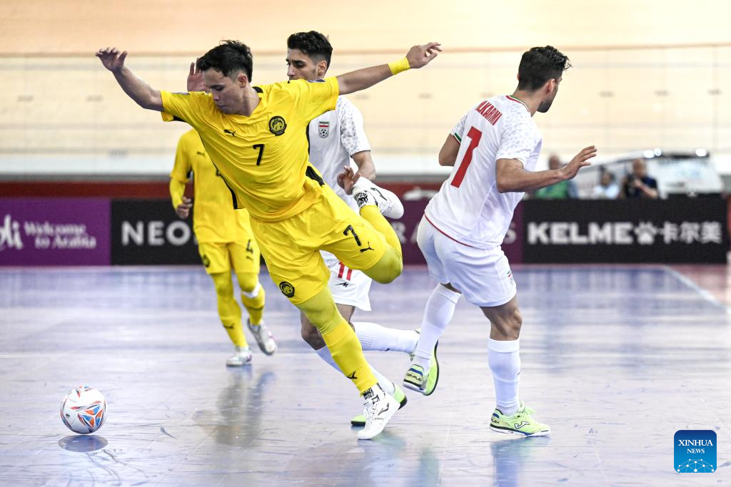 Saeid Ahmad Abassi (1st R) of Iran shoots during the group D match between Iran and Malaysia at the AFC Futsal Asian Cup 2026 in Jakarta, Indonesia, Jan. 28, 2026. (Xinhua/Agung Kuncahya B.)