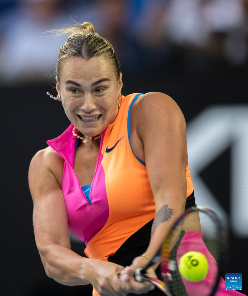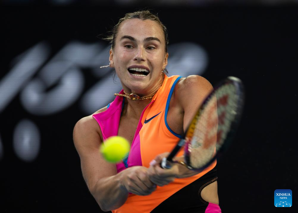 MELBOURNE, Jan. 28 (Xinhua) -- World number one Aryna Sabalenka's quest for redemption in Melbourne is almost complete after a comprehensive Australian Open semifinal victory over 12th seed Elina Svitolina on Thursday.