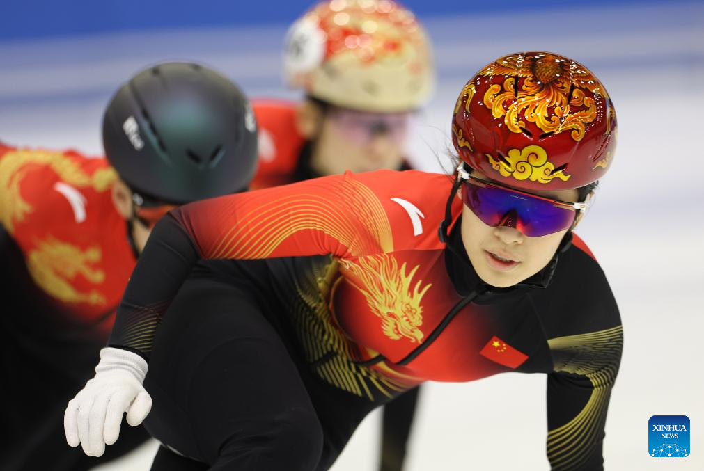 Chinese short track speed skater Yang Jingru is seen during a training session ahead of the upcoming Milan-Cortina 2026 Winter Olympics in Beijing, China, Jan. 29, 2026. (Xinhua/Li Ming)